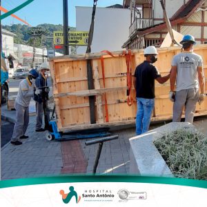Hospital Santo Antônio recebe novo equipamento de Radioterapia Com o objetivo de ampliar o serviço de radioterapia, Ministério da Saúde doa importante equipamento através de projeto. No último sábado, o Hospital Santo Antônio recebeu o Acelerador Linear do Plano de Expansão da Radioterapia do Sistema Único de Saúde - PER/SUS, doado pelo Ministério da Saúde. Em 2017, com a publicação da portaria 3.283 de 04 de Dezembro de 2017, o Hospital aderiu ao PER/SUS, com o intuito de receber a doação do equipamento de radioterapia, para ampliar os serviços ofertados pelo nosso Centro de Oncologia. O projeto viabilizou o recebimento do equipamento no Hospital Santo Antônio, sendo a terceira instituição no Brasil a ser contemplada na modalidade “casamata vazia”, por atender todos os critérios do Ministério da Saúde. Este critério consiste em ter a “casamata pronta” para abrigar o Acelerador Linear que será utilizado no tratamento para pacientes com câncer. A construção deste espaço destinado ao Acelerador Linear foi possível realizar com os recursos do Governo do Estado de SC, Município de Blumenau e do Título de Capitalização da TRIMANIA CAP. Além do Acelerador Linear da marca norte-americana Varian Medical Systems, avaliado em aproximadamente R$ 3,17 milhões, o hospital recebeu um dos mais modernos softwares de planejamento, o Eclipse, e o sistema de gerenciamento Aria. Estes softwares permitirão que os tratamentos sejam realizados de maneira ainda mais ágil e segura, proporcionando o aumento da capacidade de tratamentos na radioterapia do HSA. O processo se torna mais seguro e assertivo, devido ao sistema de gerenciamento, que capta os dados de tratamento do paciente diretamente do sistema de planejamento e registra cada uma das sessões, com capacidade de realizar cerca de 90 procedimentos por dia. O serviço de radioterapia, no Hospital Santo Antônio iniciou os atendimentos no dia 16 de janeiro de 2019 e já contava com um acelerador. Todos os tratamentos são realizados através da técnica Conformacional 3D. Um serviço considerado referência no serviço de oncologia para Blumenau e região, que compreende mais de um milhão de pessoas.