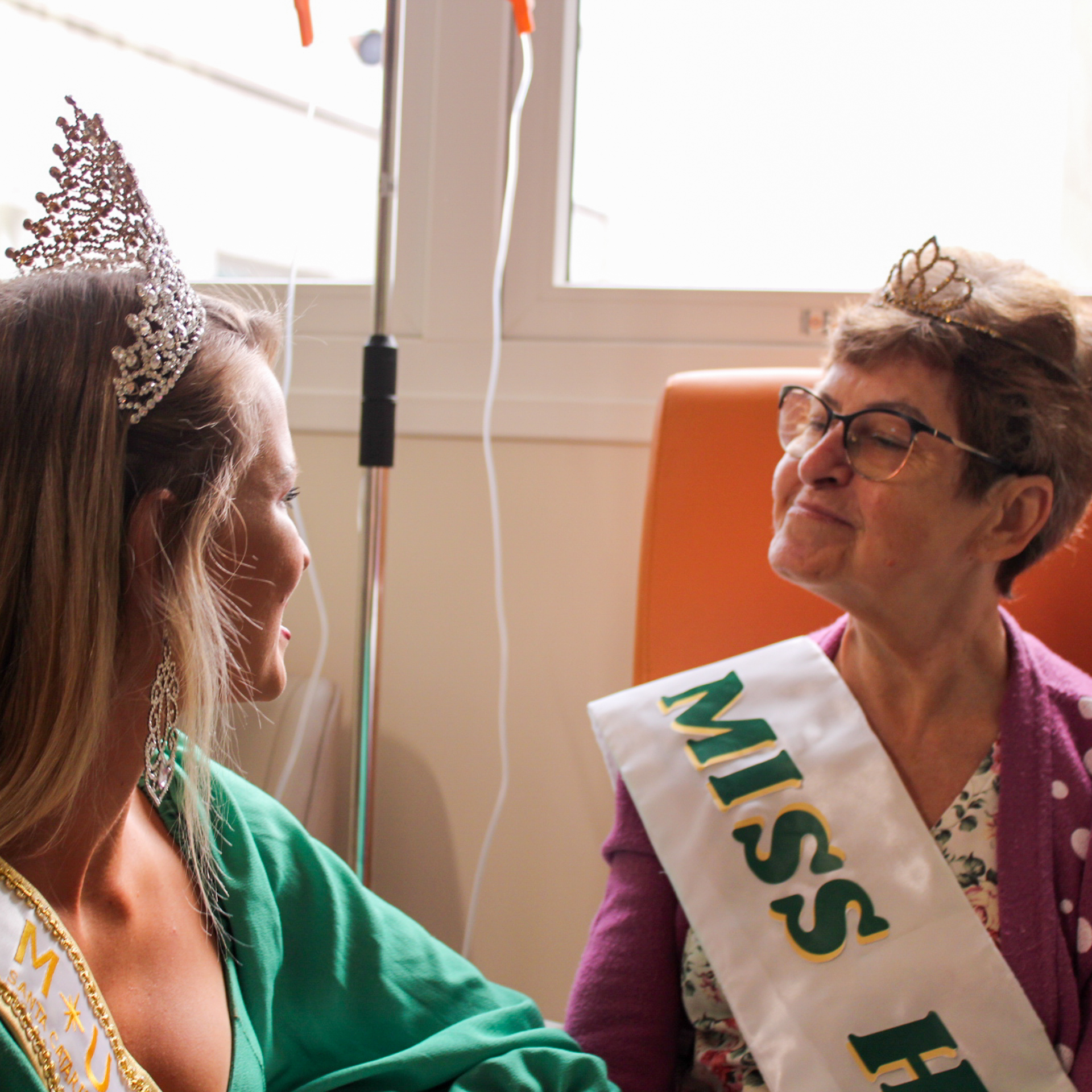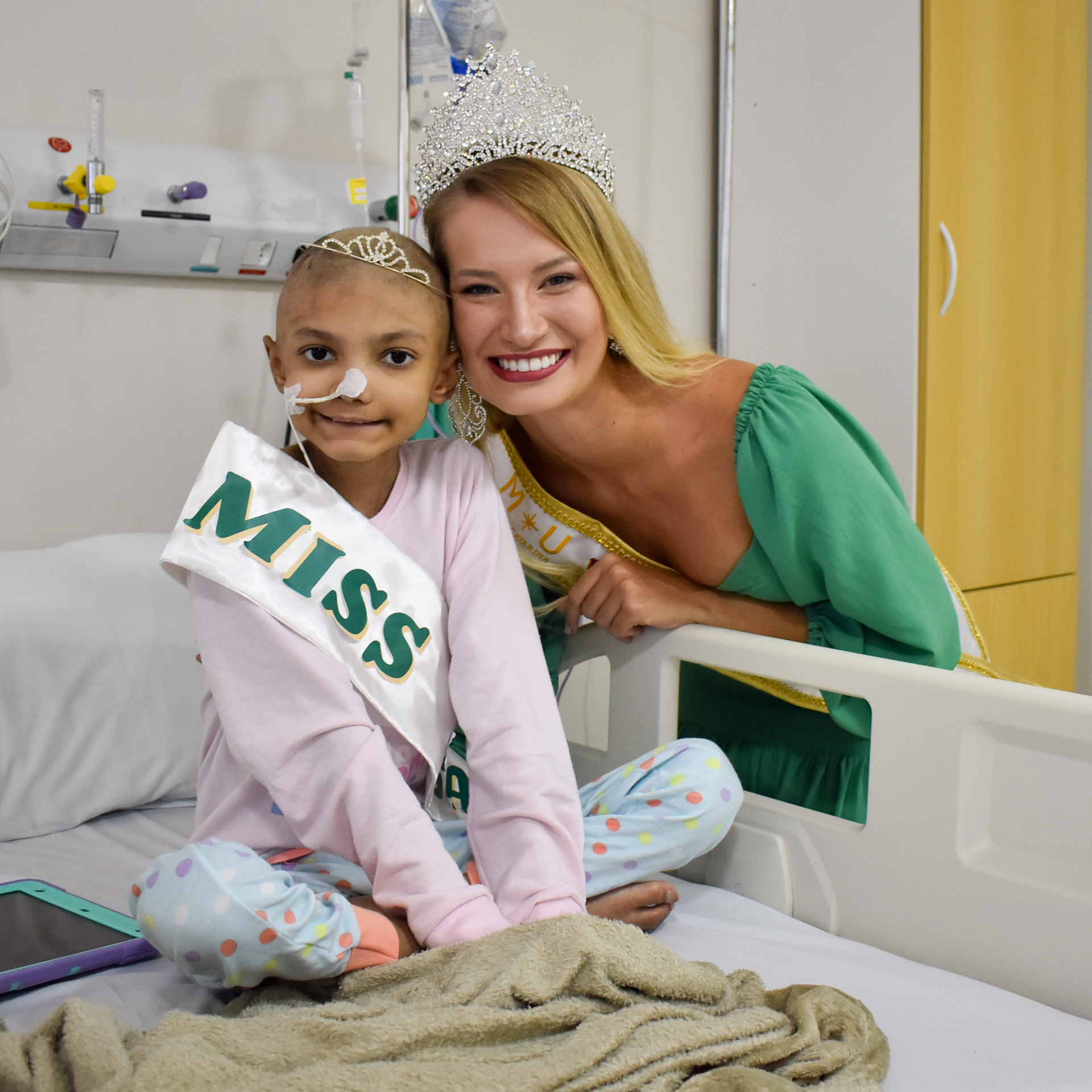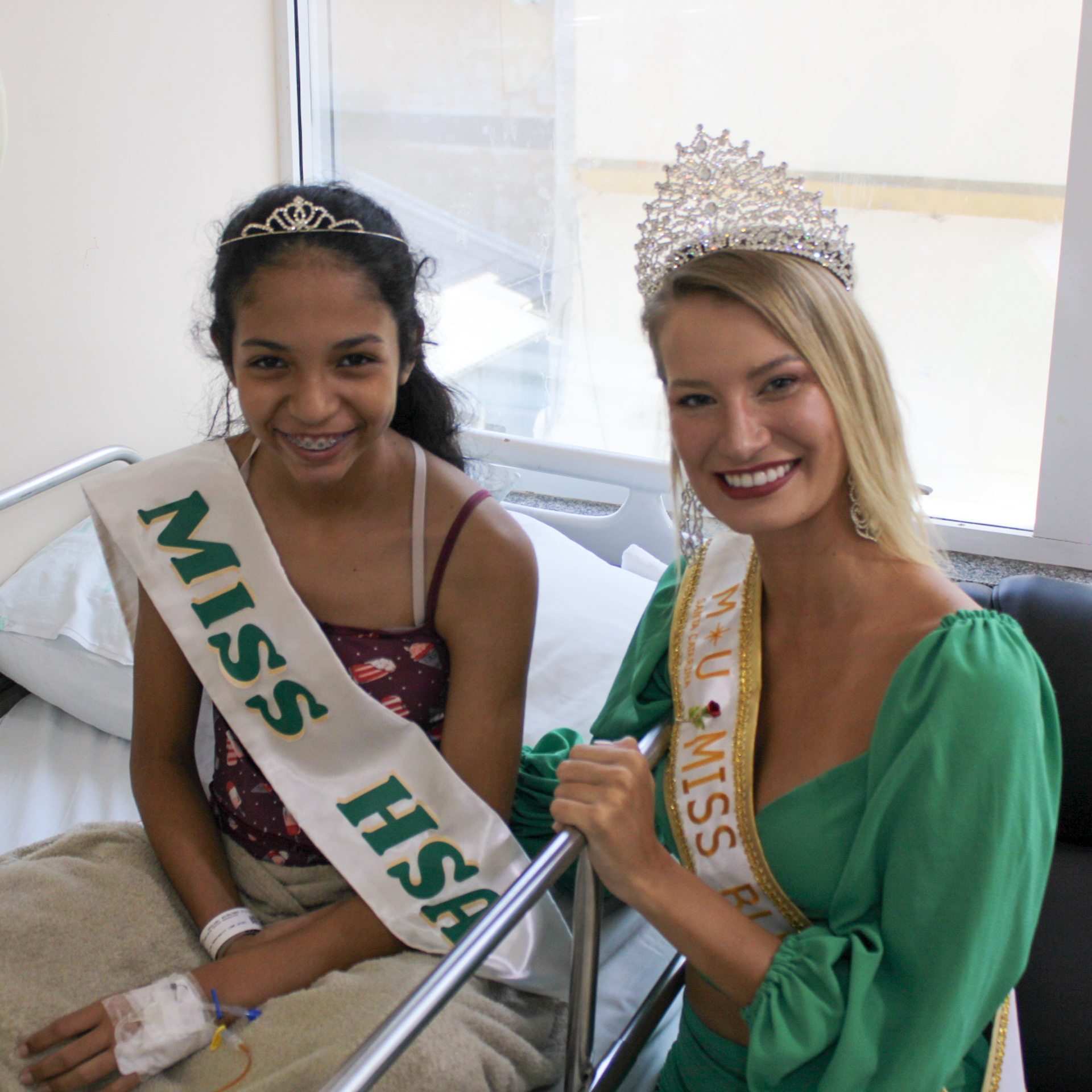 Durante a visita, Sasha tirou fotos com as pacientes, que foram coroadas como “Miss HSA” e conversou com os colaboradores e acompanhantes pelos corredores do Hospital.  A ação é de extrema importância, para a descontração, alegria e o aumento da autoestima em um momento tão difícil como o de tratamento e internação hospitalar.
