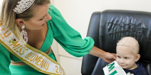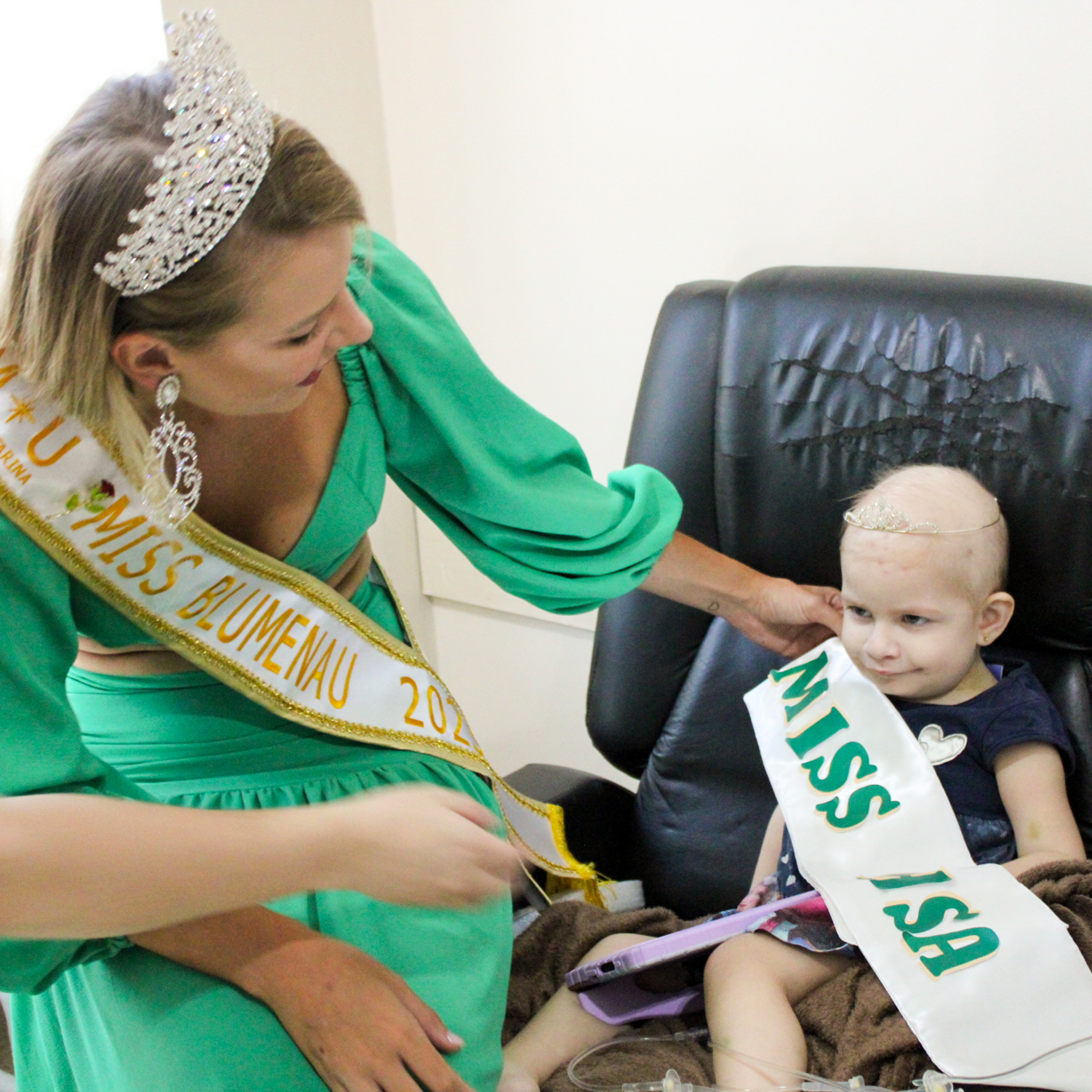Em comemoração ao Dia Internacional da Mulher, a Miss Universo Blumenau, Sasha Bauer, visitou as pacientes do Hospital Santo Antônio nesta quarta-feira. A Miss percorreu ala quimioterápica do hospital, conversou com as mulheres em tratamento e as acompanhantes e depois, visitou as crianças na ala pediátrica.