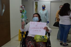 Receber a notícia que um familiar está de alta do hospital e você poderá ir busca-lo é de extrema alegria para qualquer pessoa. Imagina seu familiar estando internado devido a Covid-19. São três histórias de três mulheres que venceram a luta contra o corona vírus, e com o amor de suas famílias, irão poder ir para casa. Esvaldina Iraci de Moura Seu filho Marcos estava ansioso, com uma rosa na mão e um cartaz que dizia “eu venci o corona vírus – Covid-19”, estava impaciente na recepção do Hospital. Fazia dias que não via sua mãe, que esteve internada desde o dia 16 de julho. Dona Esvaldina de 55 anos, moradora de Blumenau, esteve 6 dias na UTI do HSA. Marcos relatou que quando soube que sua mãe ia para a UTI seu sentimento foi de medo e angustia. “Todo mundo dizia que quem vai para a UTI geralmente acaba morrendo, ainda mais ela que tem muitas doenças, as comorbidades que todo mundo diz agora, mas ela conseguiu vencer essa luta e agora poderemos ir juntos para casa” completou emocionado.