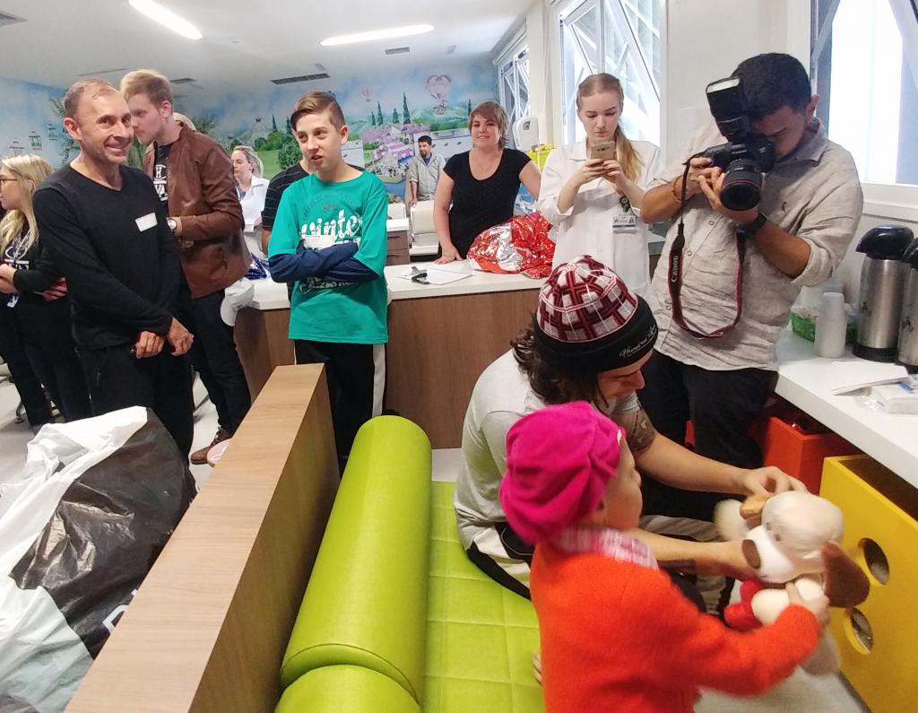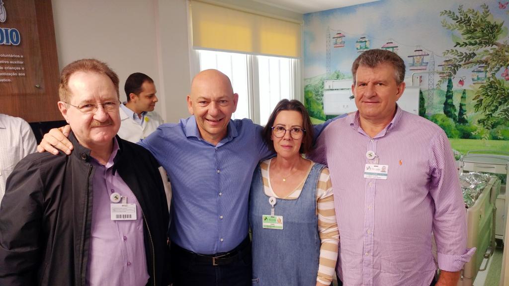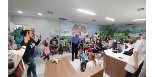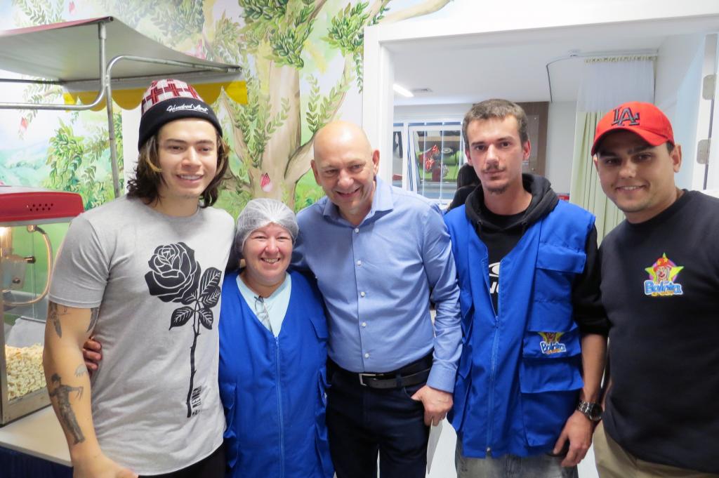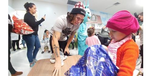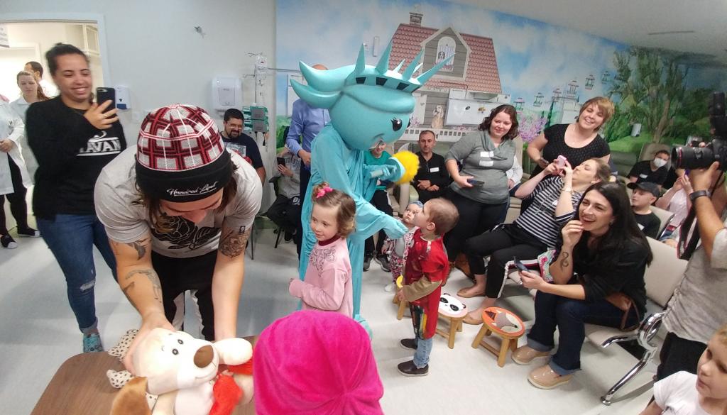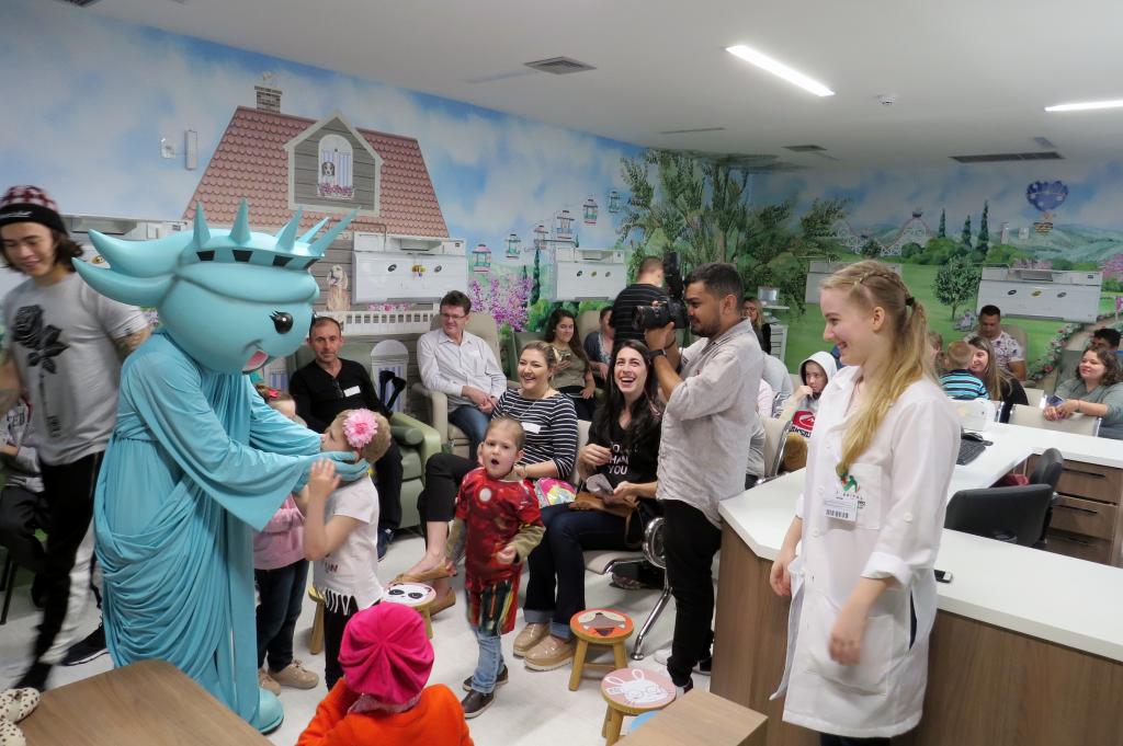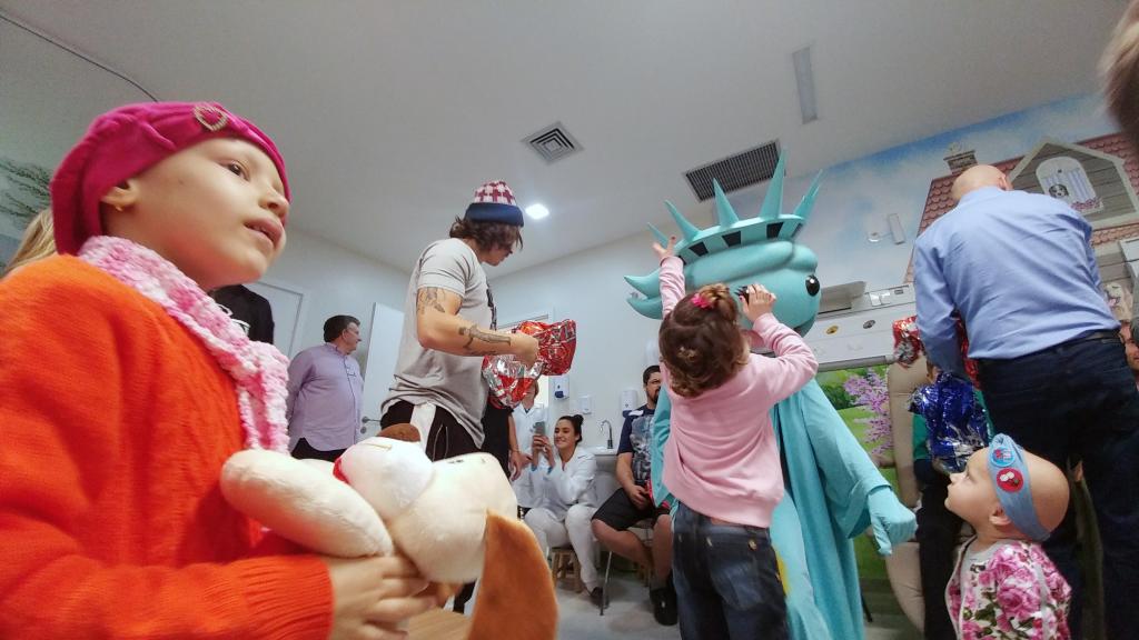 Ontem (16/09) foi um dia de muita alegria para os nossos pequenos pacientes da oncologia pediátrica. As crianças em tratamento médico esqueceram o ambiente hospitalar e se divertiram em um domingo diferente no Hospital Santo Antônio, com a visita especial do humorista Whindersson Nunes e do empresário Luciano Hang (Havan). A nova sala de quimioterapia infantil foi preparada para receber as crianças e seus familiares, que também participaram do evento e tiraram fotos com os convidados e com a “Liberdade” (estátua da Havan). Em um mundo onde, cada vez mais, as pessoas tem pouco tempo, é possível imaginar alguém doando o seu? Só no ano de 2017, a equipe de voluntários do Hospital Santo Antônio doou 6.857 horas em benefício de outras pessoas. Whindersson Nunes e Luciano Hang, ambos foram voluntários na visita, conheceram mais sobre o setor de oncologia do Hospital Santo Antônio, que é referência desde 2005 para 14 municípios do Vale do Itajaí. Entregaram presentes para as crianças, além de fazer questão de tirar fotos e atender, um por um, com todo carinho e atenção. Na ocasião, foi lançada, oficialmente, a data do primeiro Jantar Dourado do Hospital Santo Antônio, que será realizado no dia 27 de novembro, com o apadrinhamento de ambos os convidados especiais. O objetivo é angariar fundos para a construção de uma nova ala exclusiva de Oncologia Pediátrica, que terá, no mínimo, 12 leitos completamente equipados para melhor atender os pacientes infantis. Para celebrar o momento, a organização do Jantar Dourado, junto com a ASA - Associação Amigos do Hospital Santo Antônio, prepara uma noite especial aos seus convidados, com direito a show ao vivo, com a participação de pacientes e voluntários, exposição fotográfica, palestras, além de um buffet delicioso com saladas, prato principal e sobremesa. Mais informações em breve pelo site www.jantardourado.com.br Jantar Dourado do Hospital Santo Antônio Data: 27 de Novembro de 2018 Horário: 19:30h Valor: R$100 por pessoa Local: Tabajara Tênis Clube [gallery columns="5" link="file" ids="8856,8805,8806,8859,8807,8808,8809,8810,8811,8855,8812,8813,8814,8815,8816,8817,8818,8819,8820,8821,8822,8823,8824,8825,8826,8827,8828,8829,8830,8831,8832,8833,8834,8835,8836,8837,8838,8839,8840,8841,8842,8843,8844,8845,8846,8847,8848,8849,8850,8851,8852,8857,8858"]