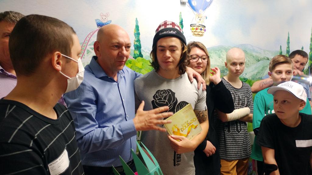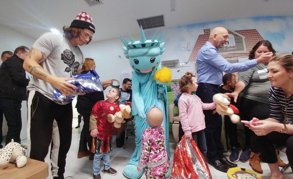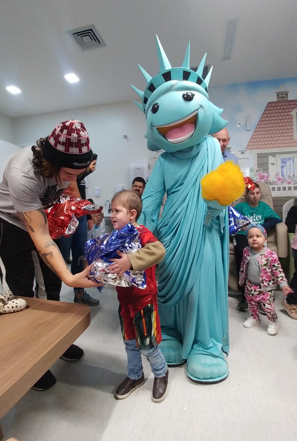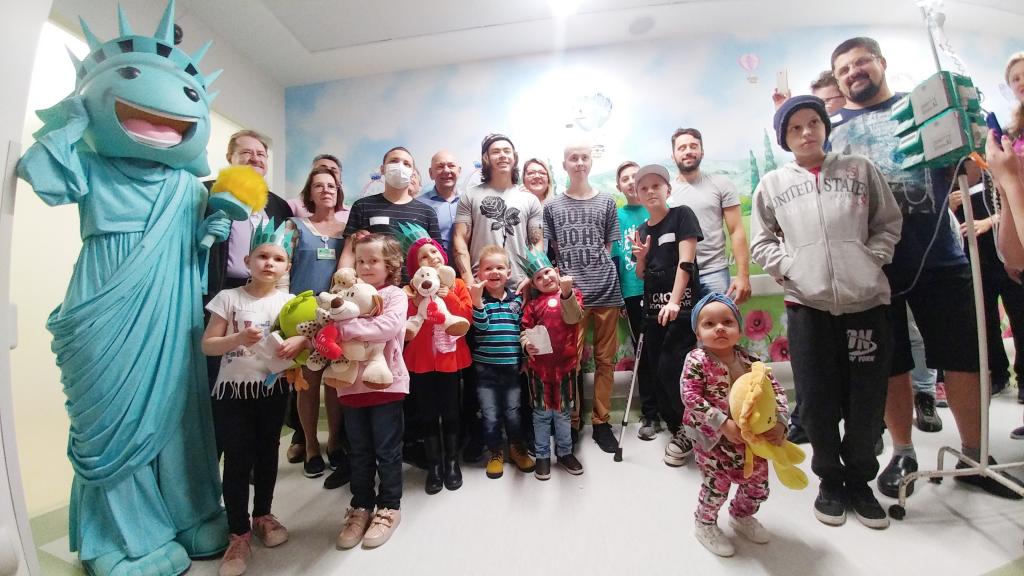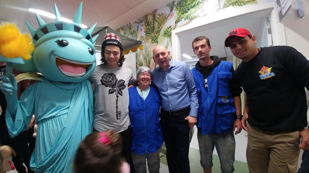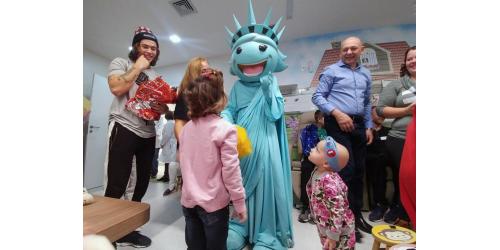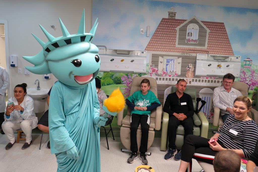 Ontem (16/09) foi um dia de muita alegria para os nossos pequenos pacientes da oncologia pediátrica. As crianças em tratamento médico esqueceram o ambiente hospitalar e se divertiram em um domingo diferente no Hospital Santo Antônio, com a visita especial do humorista Whindersson Nunes e do empresário Luciano Hang (Havan). A nova sala de quimioterapia infantil foi preparada para receber as crianças e seus familiares, que também participaram do evento e tiraram fotos com os convidados e com a “Liberdade” (estátua da Havan). Em um mundo onde, cada vez mais, as pessoas tem pouco tempo, é possível imaginar alguém doando o seu? Só no ano de 2017, a equipe de voluntários do Hospital Santo Antônio doou 6.857 horas em benefício de outras pessoas. Whindersson Nunes e Luciano Hang, ambos foram voluntários na visita, conheceram mais sobre o setor de oncologia do Hospital Santo Antônio, que é referência desde 2005 para 14 municípios do Vale do Itajaí. Entregaram presentes para as crianças, além de fazer questão de tirar fotos e atender, um por um, com todo carinho e atenção. Na ocasião, foi lançada, oficialmente, a data do primeiro Jantar Dourado do Hospital Santo Antônio, que será realizado no dia 27 de novembro, com o apadrinhamento de ambos os convidados especiais. O objetivo é angariar fundos para a construção de uma nova ala exclusiva de Oncologia Pediátrica, que terá, no mínimo, 12 leitos completamente equipados para melhor atender os pacientes infantis. Para celebrar o momento, a organização do Jantar Dourado, junto com a ASA - Associação Amigos do Hospital Santo Antônio, prepara uma noite especial aos seus convidados, com direito a show ao vivo, com a participação de pacientes e voluntários, exposição fotográfica, palestras, além de um buffet delicioso com saladas, prato principal e sobremesa. Mais informações em breve pelo site www.jantardourado.com.br Jantar Dourado do Hospital Santo Antônio Data: 27 de Novembro de 2018 Horário: 19:30h Valor: R$100 por pessoa Local: Tabajara Tênis Clube [gallery columns="5" link="file" ids="8856,8805,8806,8859,8807,8808,8809,8810,8811,8855,8812,8813,8814,8815,8816,8817,8818,8819,8820,8821,8822,8823,8824,8825,8826,8827,8828,8829,8830,8831,8832,8833,8834,8835,8836,8837,8838,8839,8840,8841,8842,8843,8844,8845,8846,8847,8848,8849,8850,8851,8852,8857,8858"]