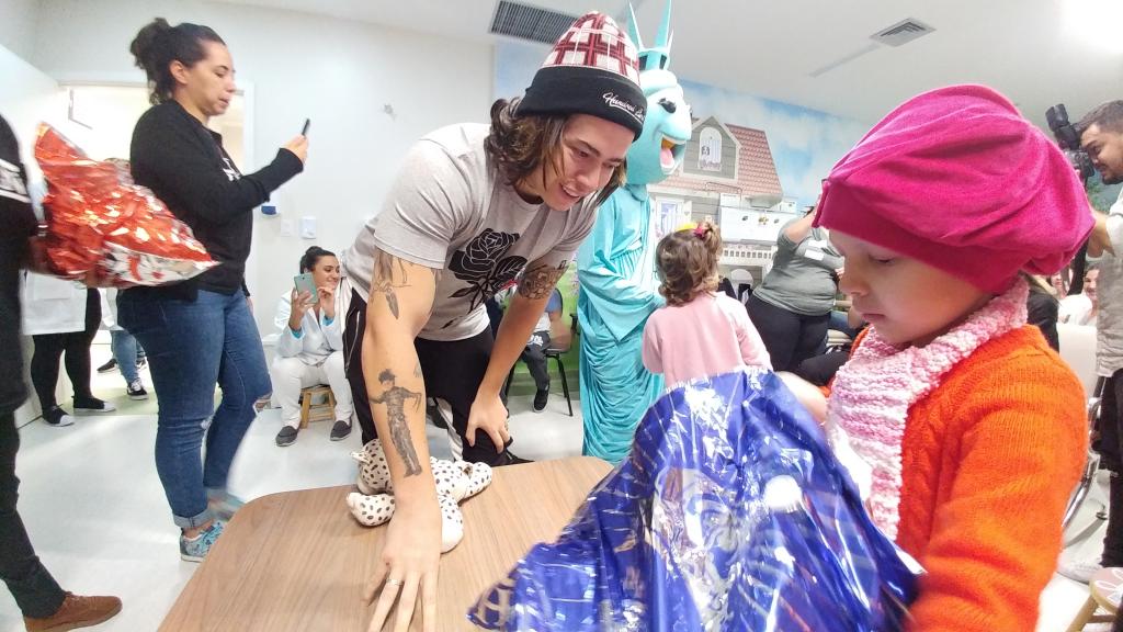 Whindersson Nunes e Luciano Hang visitam a oncologia pediátrica do Hospital Santo Antônio